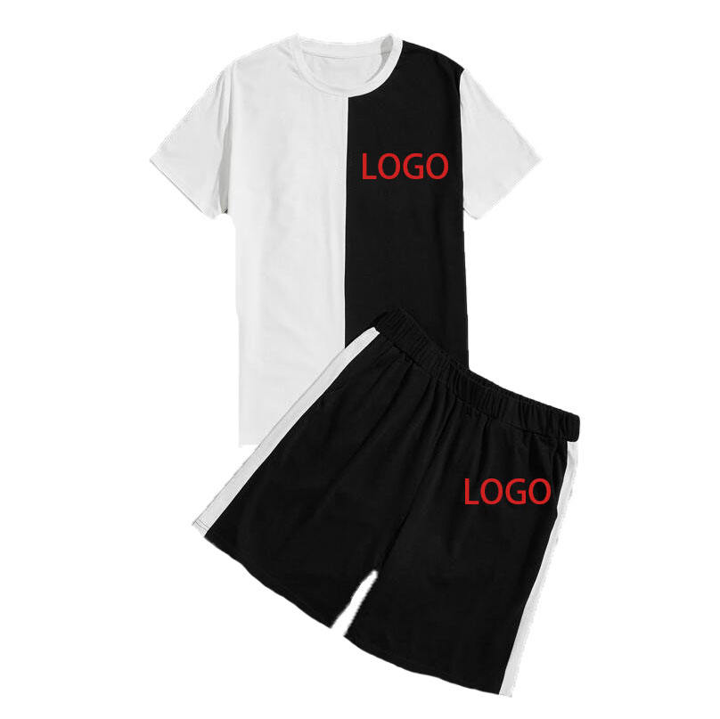 Conjunto de dos piezas para hombre, chándal personalizado, pantalones cortos de bloque de Color contrastante, para correr, Verano