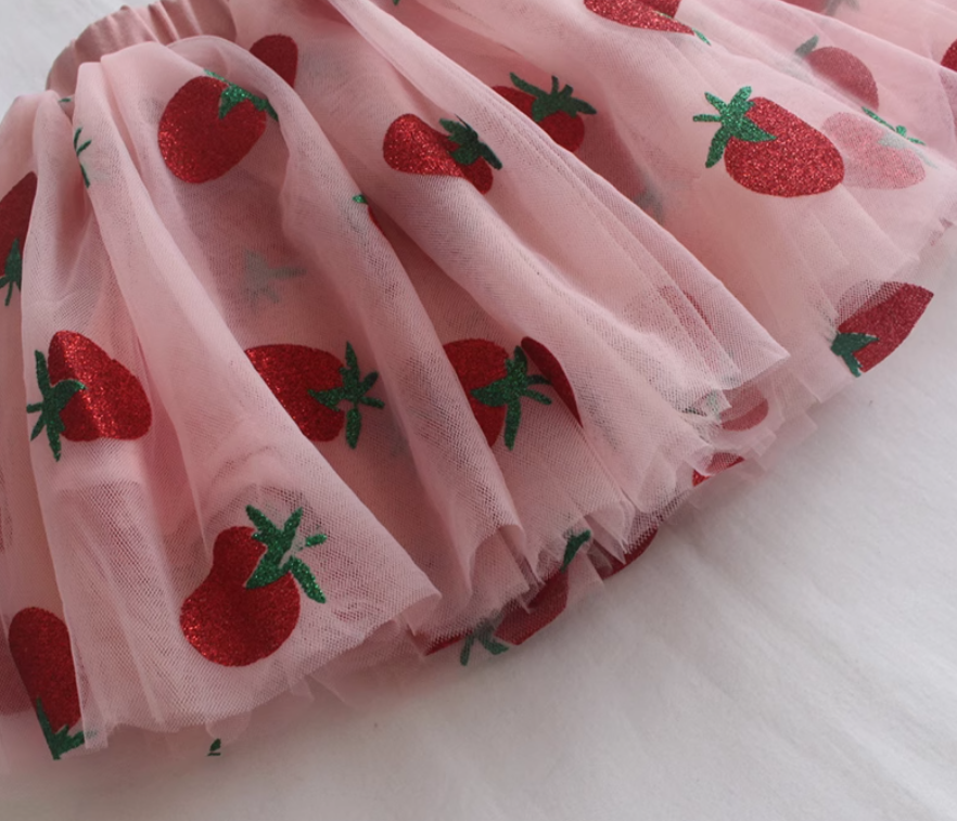 Verano personalizar tutú algodón suave forro moda Nova dancewear fresa shortcake capas Petite falda
