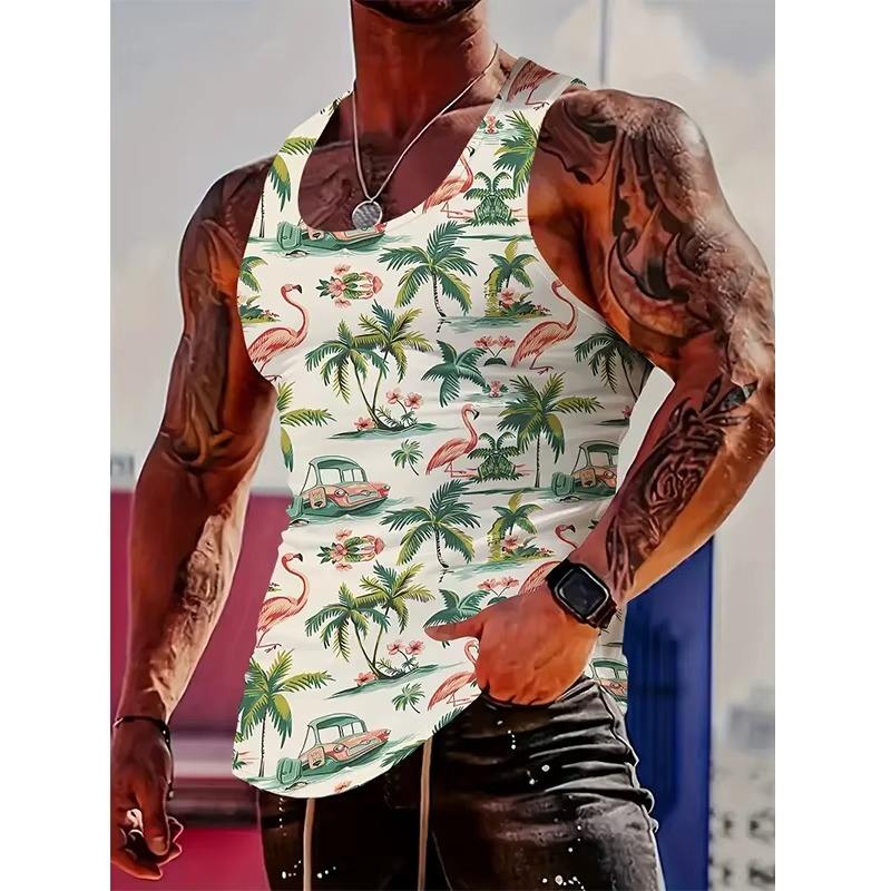 Camiseta sin mangas de moda para hombre de calle diaria de verano, camiseta informal sin mangas para hombre, Camiseta con estampado de palmera en 3D, chaleco con cuello redondo para hombre, camisetas