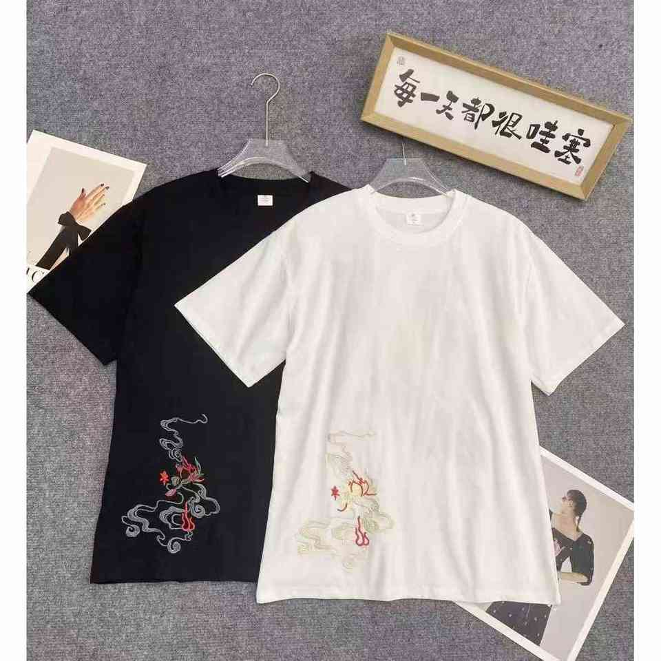 Camiseta de algodón pesado para hombre a la moda de verano, camiseta de manga corta con cuello redondo estampada holgada a la moda, estilo de pareja