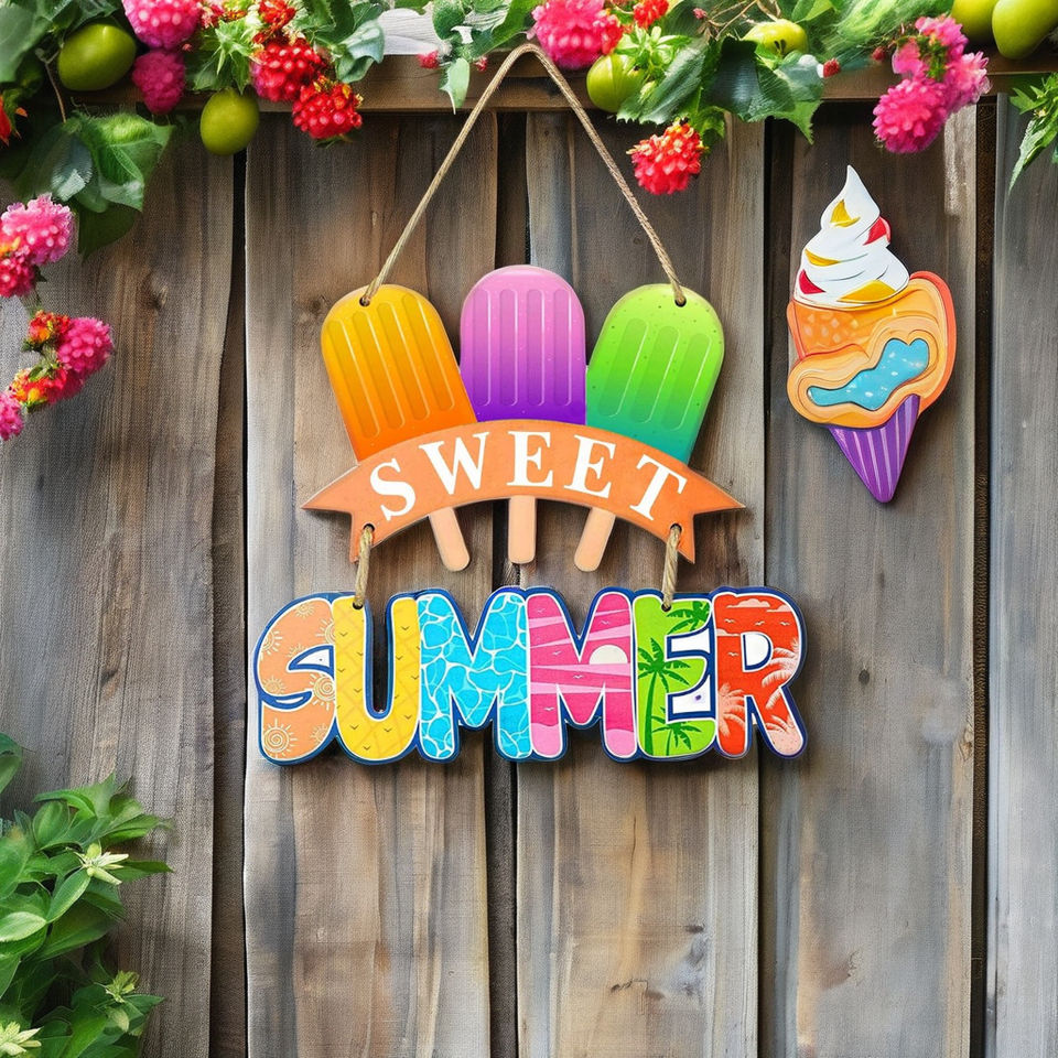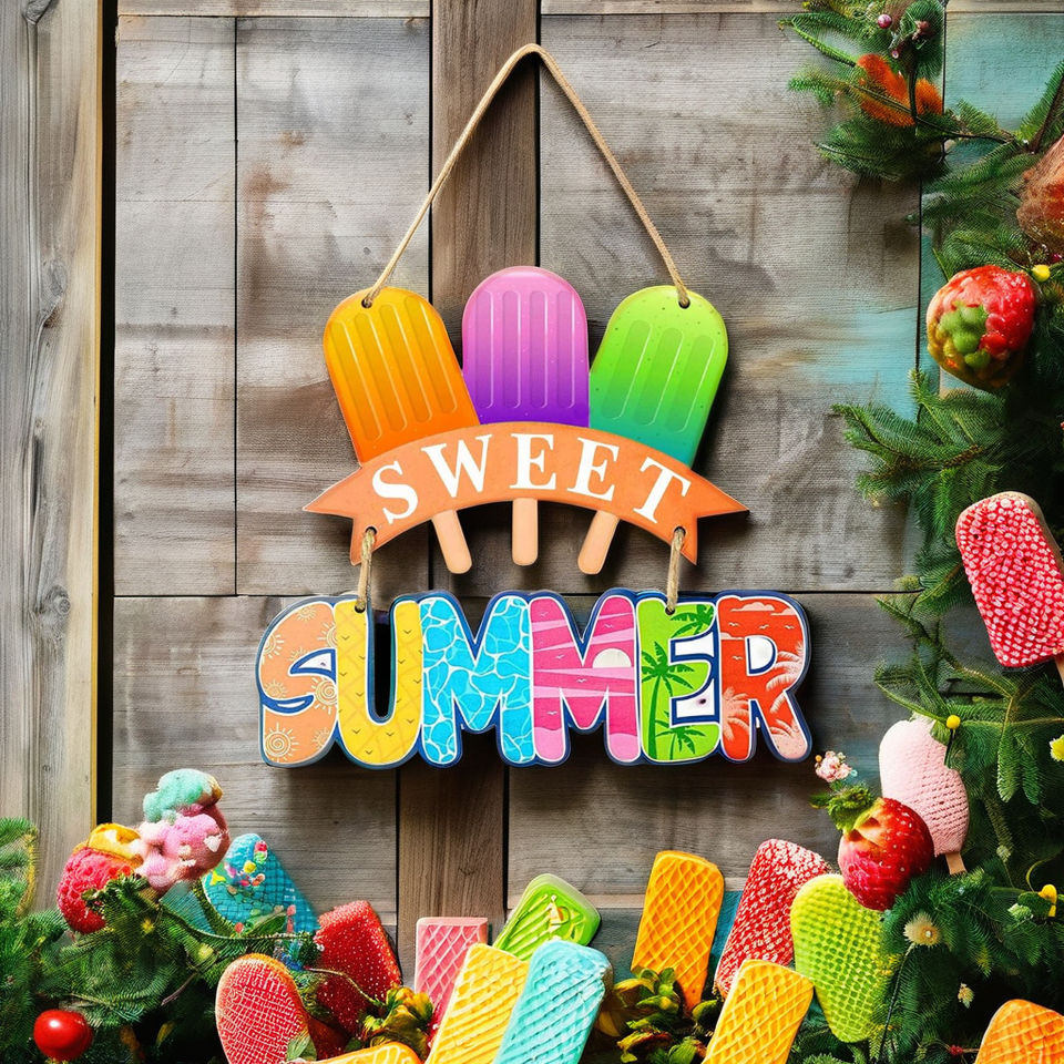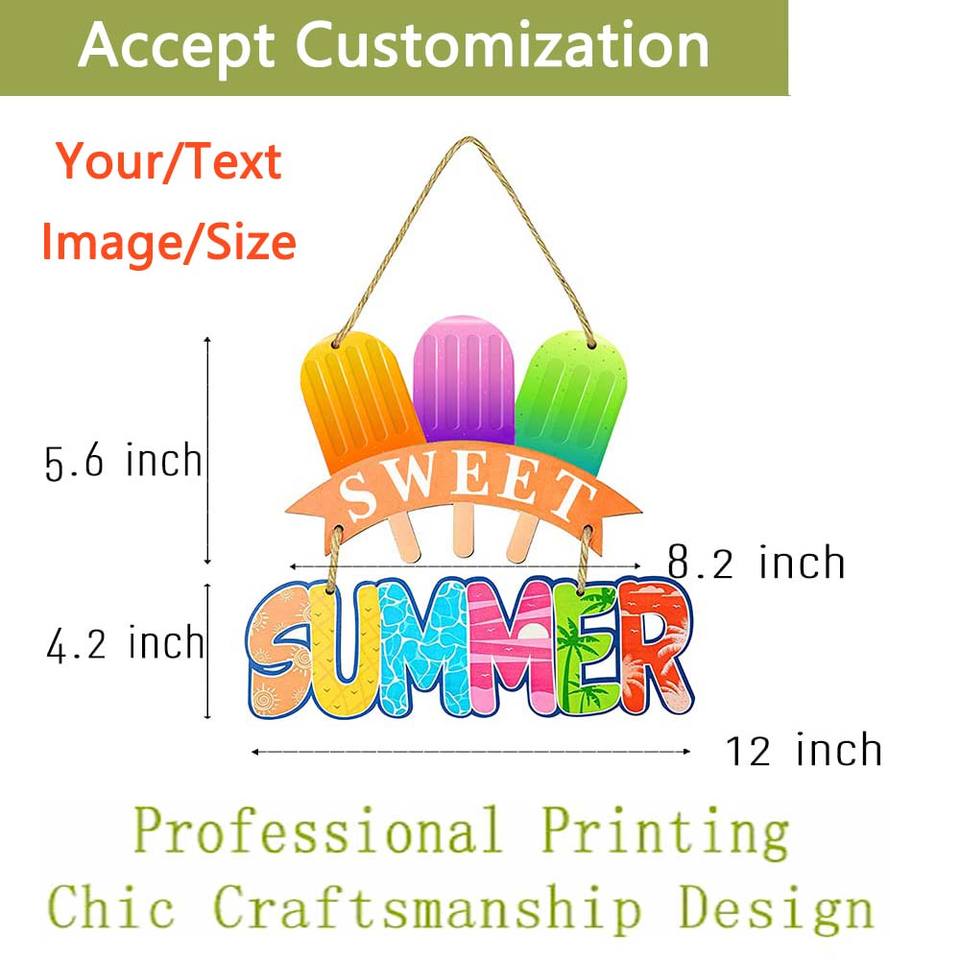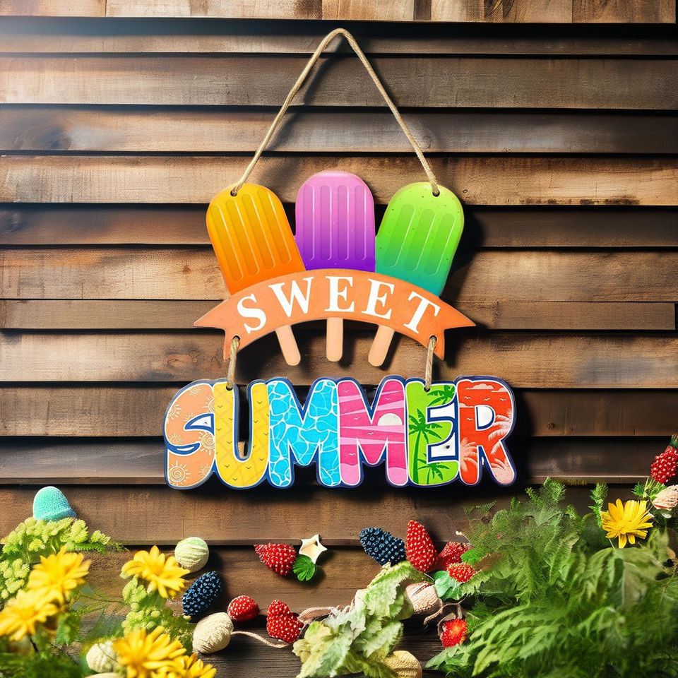 Letrero de bienvenida de verano para puerta principal, estilo Art Deco, de bambú y madera irregular, decoración de pared colgante, fresa, para el porche del hogar