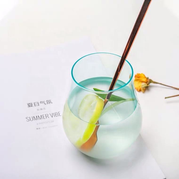 Summer Gradient Color 350ml Ligero Egg Cup Lovely Whisky Glass con mango para el hogar Vaso de chupito de vino