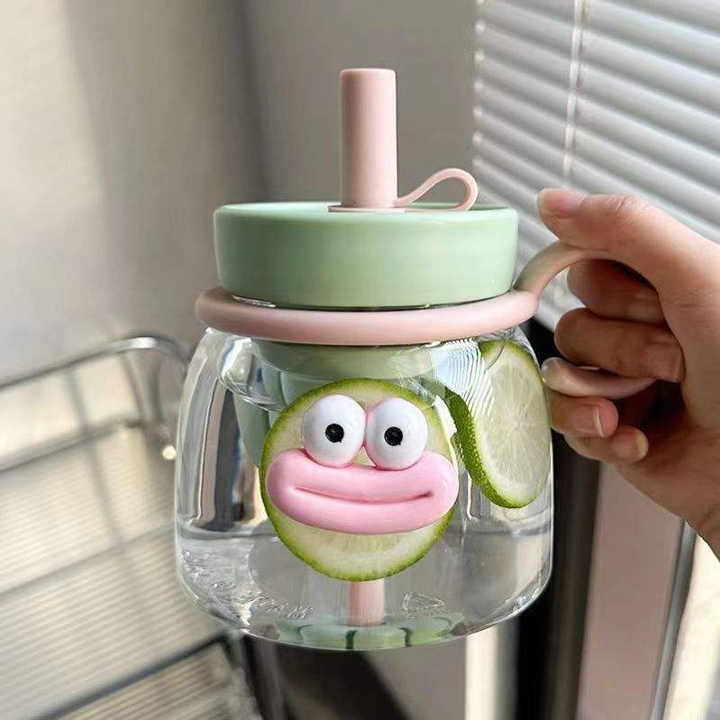 Vaso de agua de plástico grande de alta capacidad para verano, Pajita Horizontal, vientre grande, resistencia a altas temperaturas, taza de té encantadora