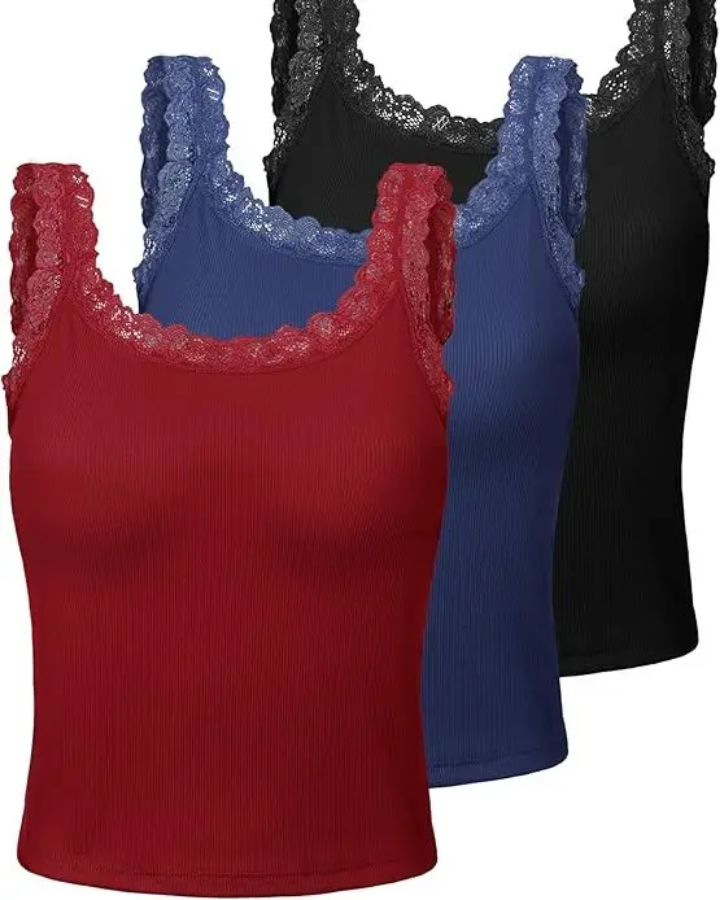 Camiseta sin Mangas de Verano para Mujer, Tejida, Transpirable, con Encaje, Informal, Dulce, de Jersey Blanco, de Algodón de Alta Calidad, Top Corto, Gran Venta