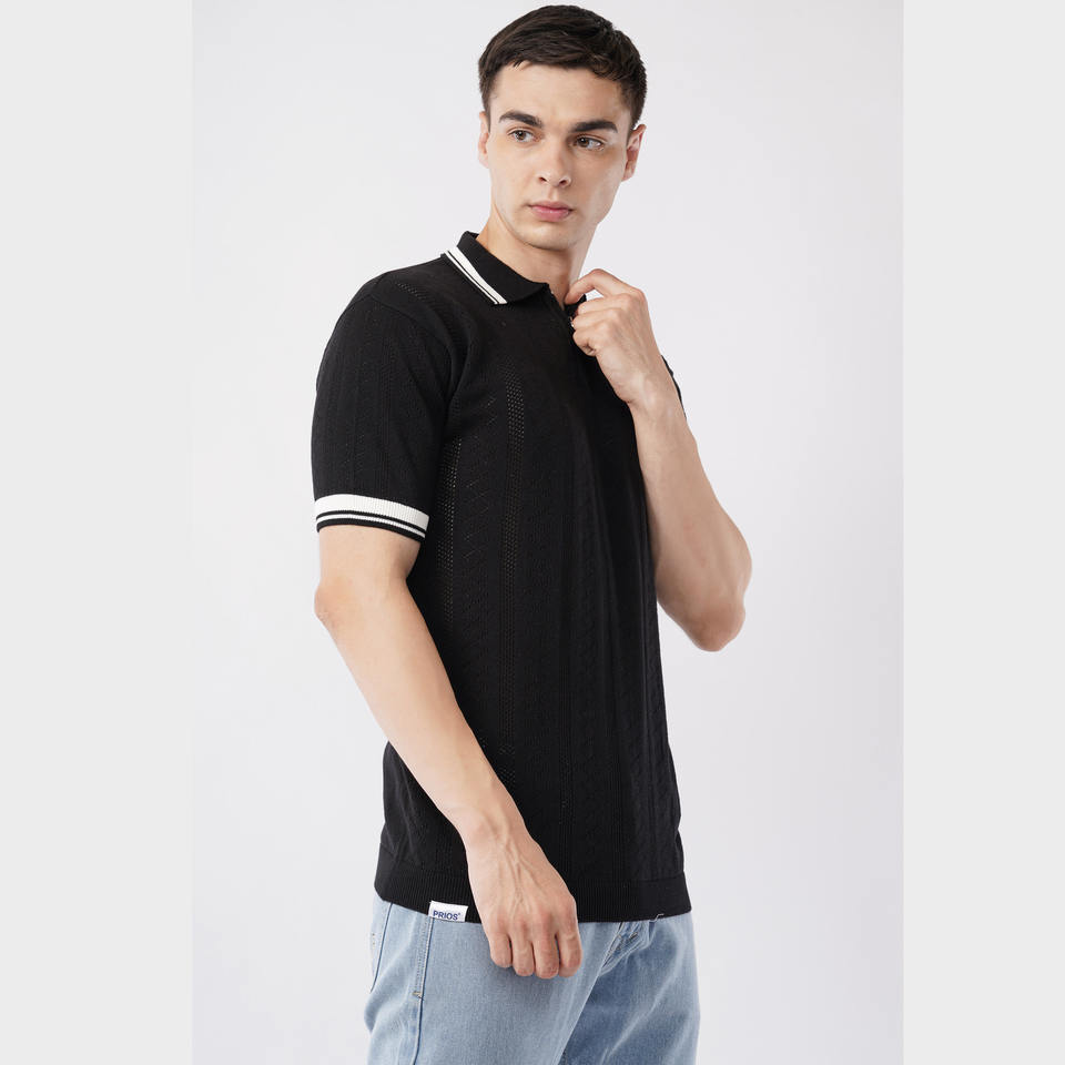 Verano suelto Casual de manga corta y cremallera Polo cuello Color sólido tejido Top tejido Jersey camiseta para hombres