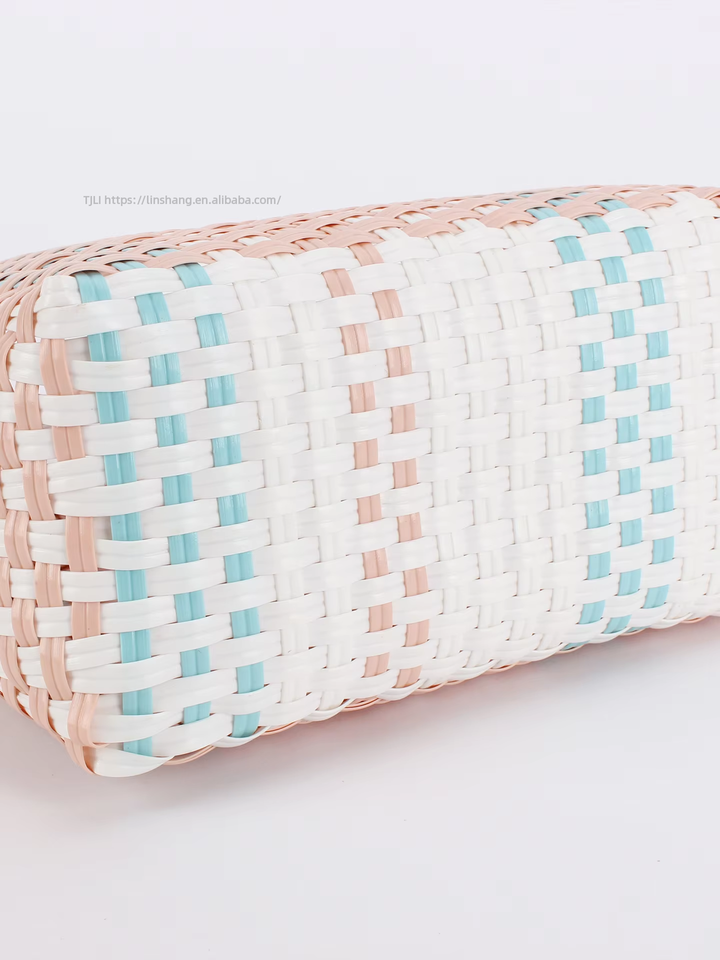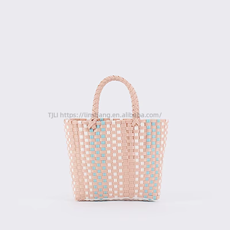 Bolso Cuadrado de Mano para Niños, Diseño Veraniego con Contraste de Color Macaron, Tejido en PVC Hecho a Mano, Dos Asas, Cierre Abierto, para Playa y Viajes, Marca Tanjing