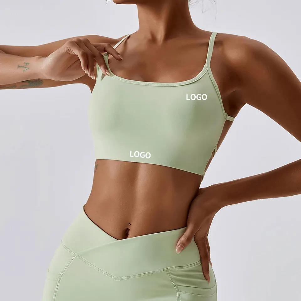 Novedad de verano, sujetador de Yoga con tiras en la espalda cruzada ecológico para Fitness, sujetador deportivo con espalda abierta y conjunto de talla grande sin costuras