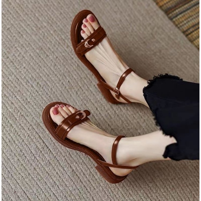 Novedad de verano, sandalias marrones Retro francesas para mujer con tacones bajos y Sandalias planas de Roma