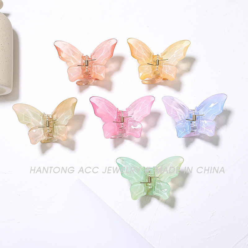 Novedad de verano, pinzas para el pelo de mariposa degradadas, diamantes de imitación de plástico, herramienta de fijación de cola de caballo, pinzas para el pelo dulces, moño para La Cabeza trasera