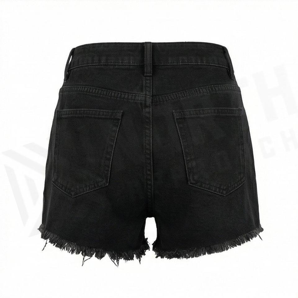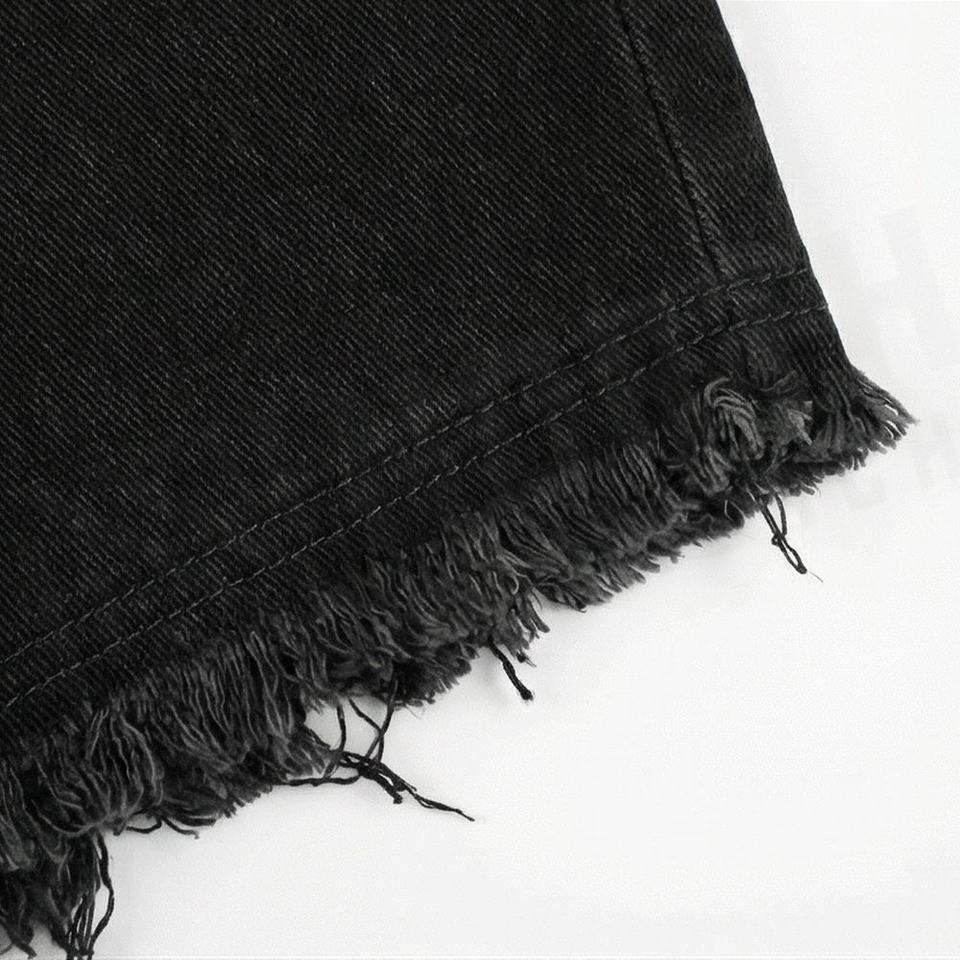 Shorts de mezclilla de pierna ancha con cintura alta, perforados y con borde deshilachado para mujer, color personalizado, estilo casual y moderno para el verano.
