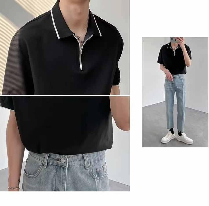 Verano nuevo hielo seda manga corta hombres Piqué tela POLO camisa solapa transpirable camisa