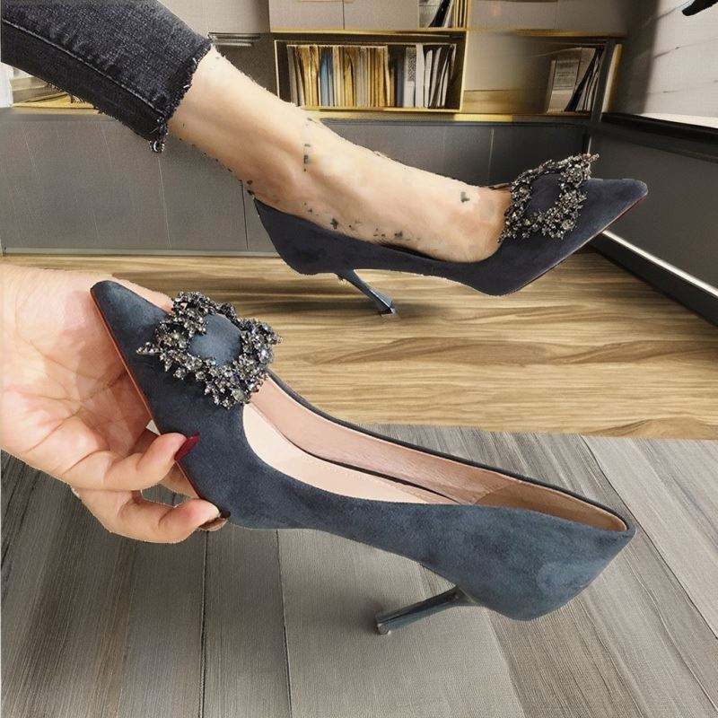 Nuevas Sandalias de Verano para Mujer con Hebilla Cuadrada de Diamantes de Imitación, Punta Puntiaguda y Diseño de Medio Tacón Fino