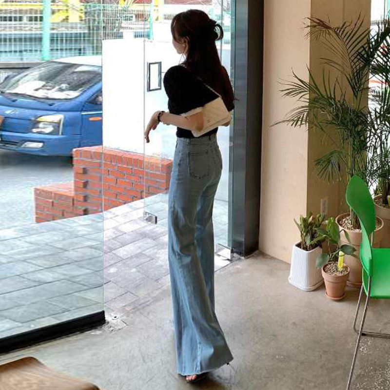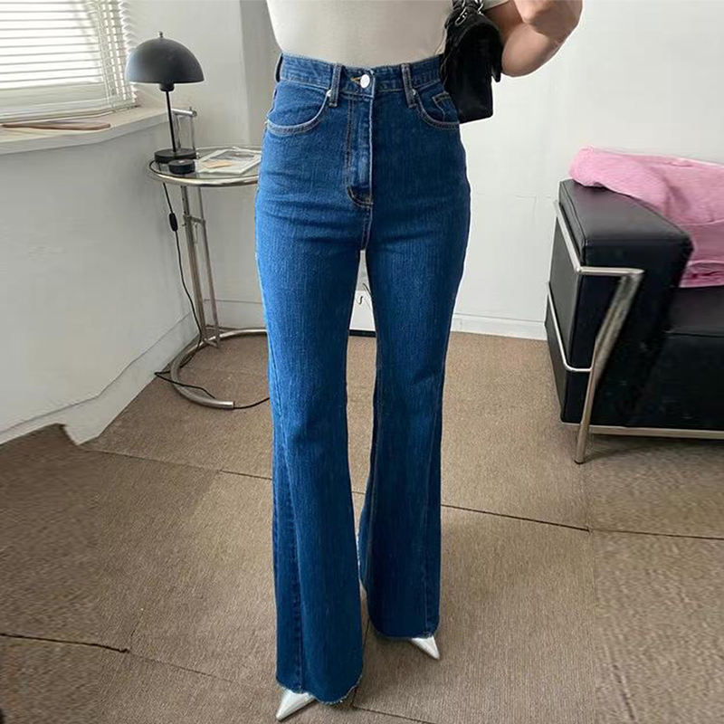Verano nicho temperamento cintura alta multifuncional Slim Fit tubo recto Micro trompeta pantalones vaqueros de mujer