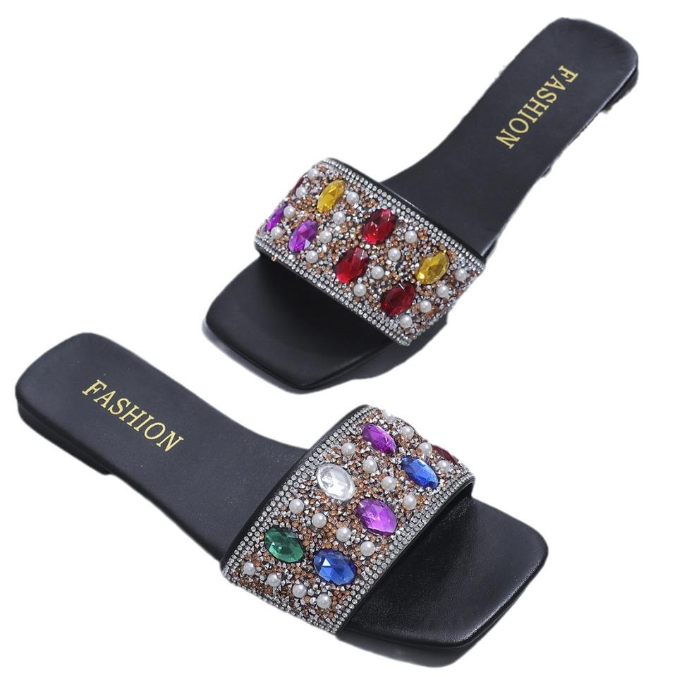 Sandalias de Verano de Una Sola Tira para Mujer, Versátiles, con Punta Cuadrada, de Moda, Planas, Casuales, para Playa y Exteriores