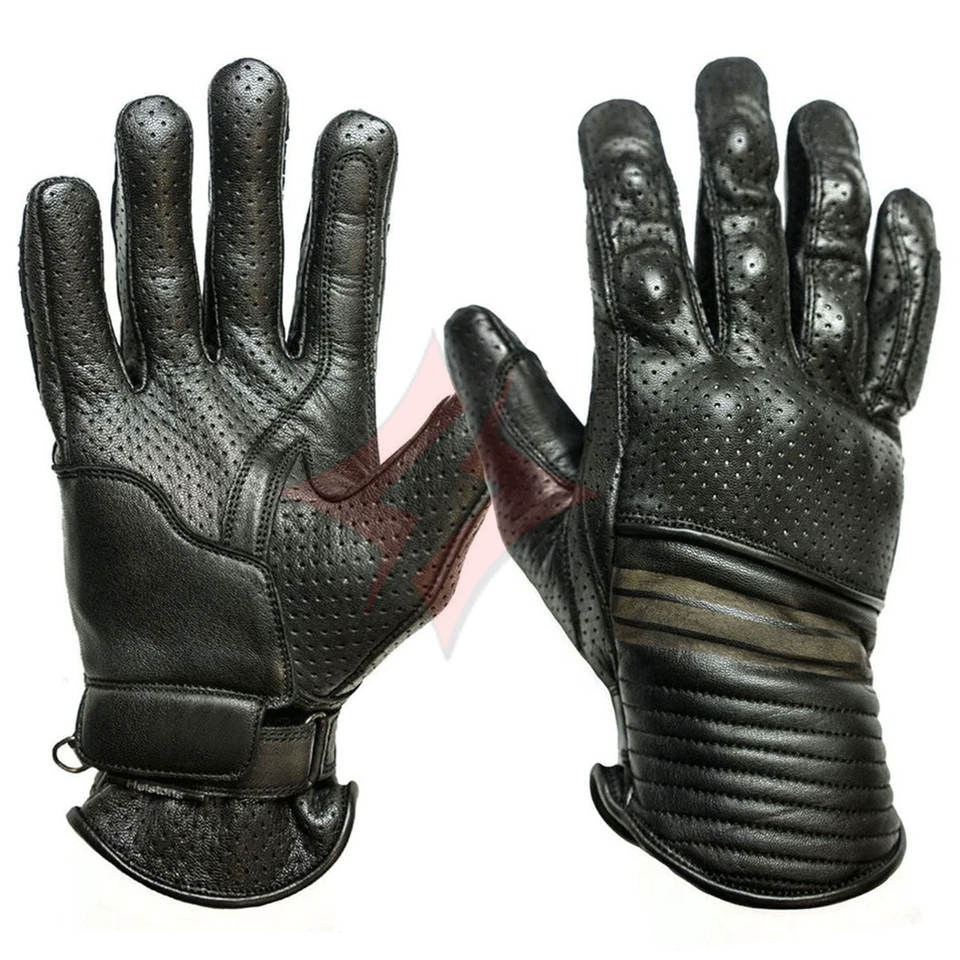 Guantes de Motocicleta de Cuero Genuino Perforados de Verano, Unisex, Camel/Negro, Transpirables, Impermeables, Protección UV, Deportivos