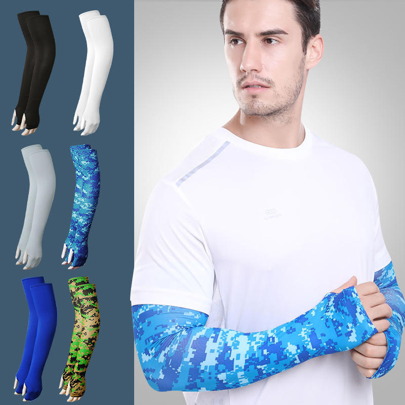 Summer Plus Size Sun Protection Arm Sleeves For Men Ice Silk UV Protection High Elasticity Breathable Loose Fit Fishing Arm
