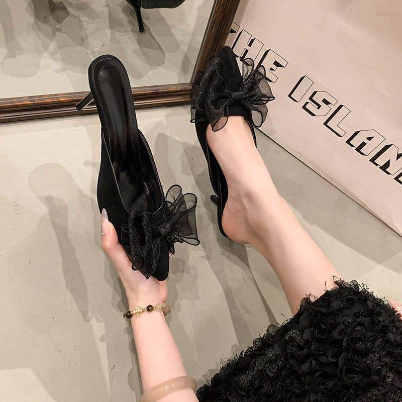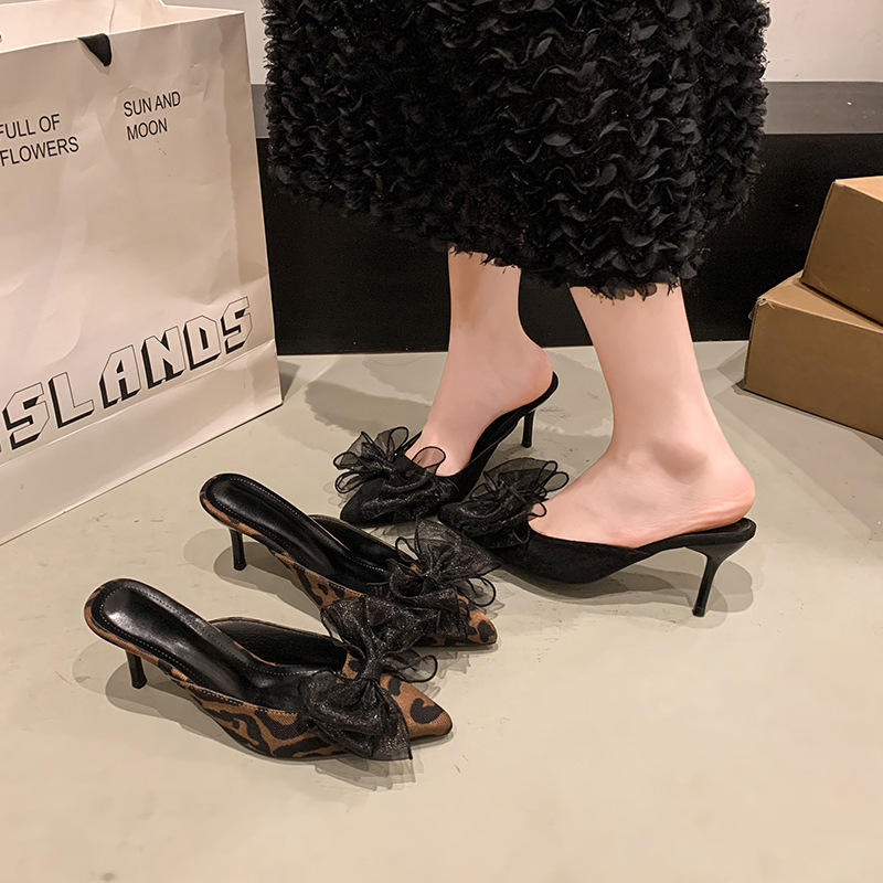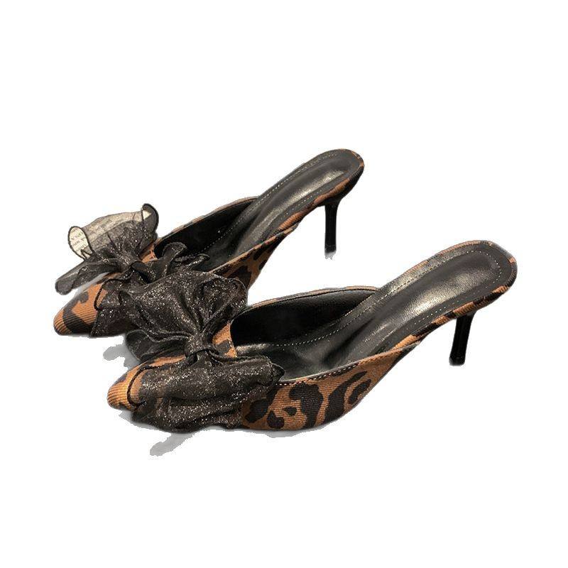 Sandalias de Tacón Medio con Punta en Pico y Lazos para Mujer, Elegantes, Tallas Grandes, Estampado de Leopardo, Sexys