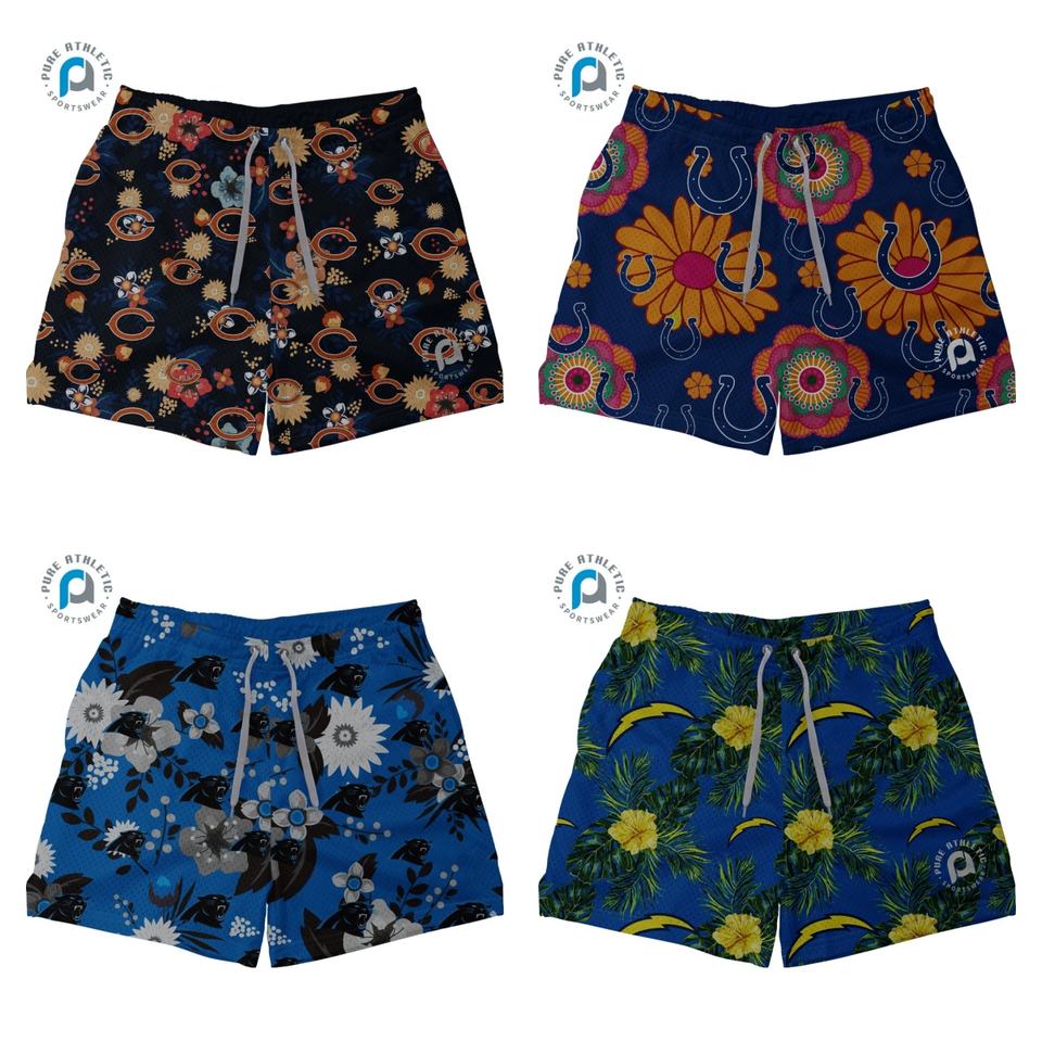 Pantalones cortos de malla de flora para entrenamiento deportivo con diseño de poliéster de verano, pantalones cortos florales tropicales personalizados, pantalones cortos de playa de secado rápido de 5 pulgadas para hombres