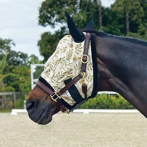 Máscara Antimoscas de Cuero Genuino para Caballos, Protección de Verano, Malla Transpirable, Bloqueo UV, Diseño Suave de Protección para Orejas/Nariz, para Montar a Caballo