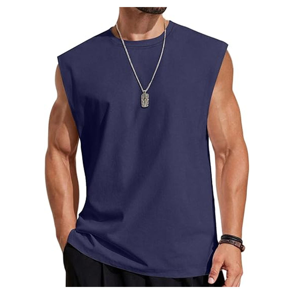 Camiseta Deportiva de Secado Rápido para Verano, 100% Fibra de Poliéster, Chaleco Deportivo sin Mangas para Hombre, Camiseta de Gimnasio en Azul Marino