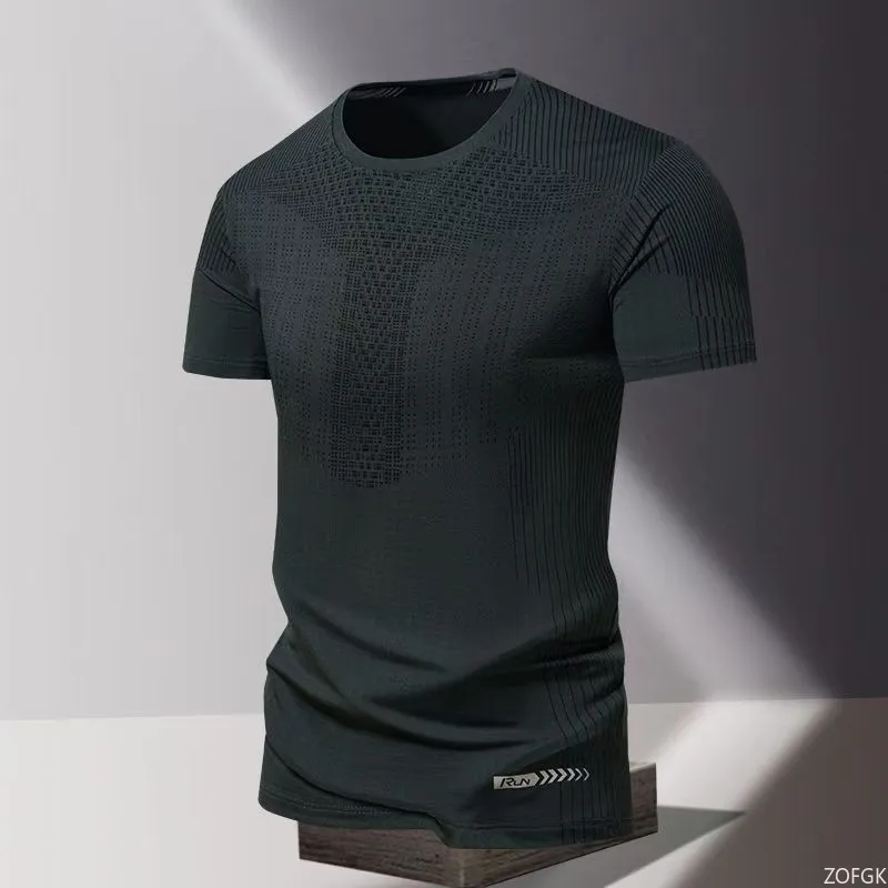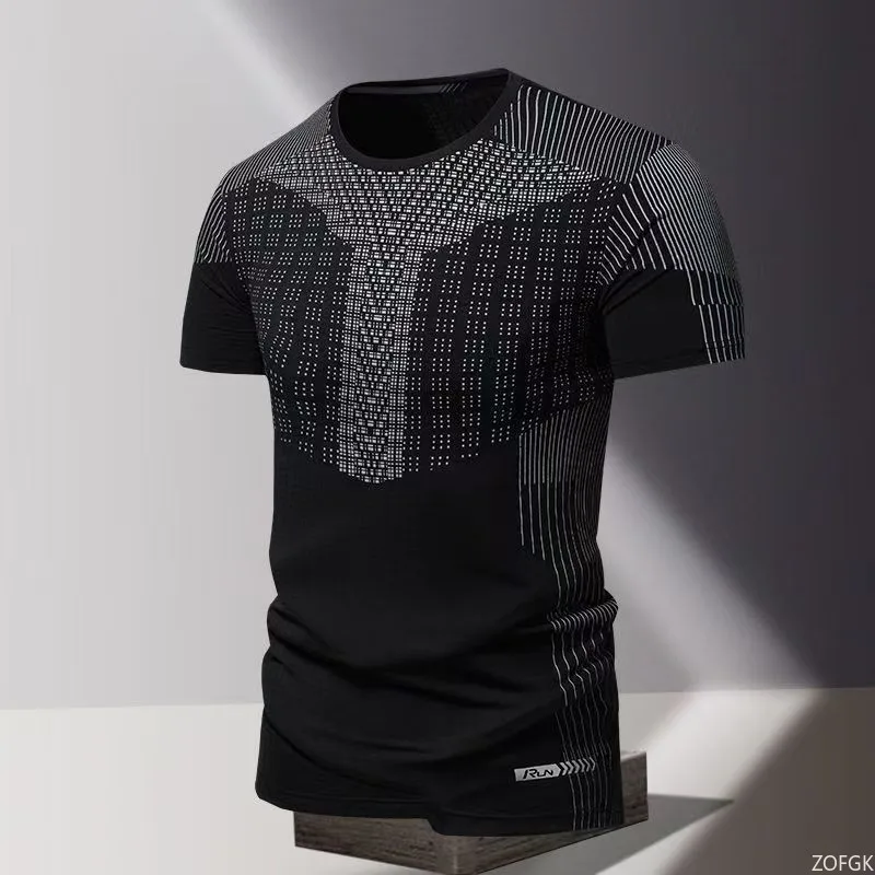 Camiseta de Verano para Hombre, de Secado Rápido, Tejido Formal, con Estampado de Serigrafía, Cuello Redondo, Holgada, de Manga Corta