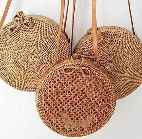 Bolsos de Hombro de Ratán de Verano, Bolsos Ecológicos para Mujer, Estilo Bohemio, Cierre de Cordón, Bolso de Paja de Playa de Bali de Alta Calidad