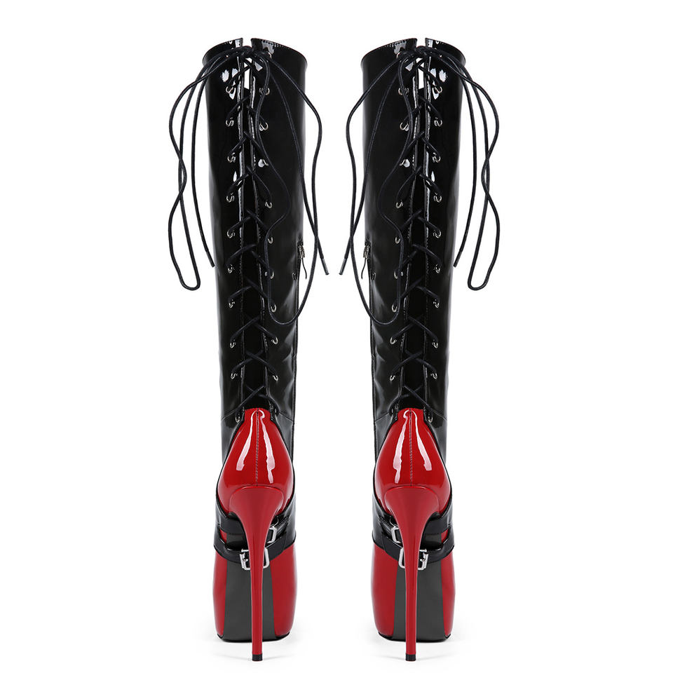 Botas Altas de Verano Rojas con Parches de Charol, Talla Grande 47, con Aberturas Traseras, Cordones, Plataforma Gruesa y Tacón Fino, Zapatos de Fiesta