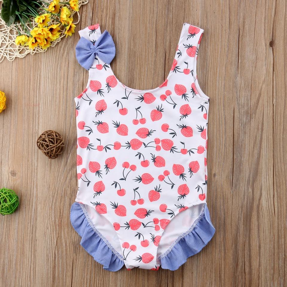 Traje de baño de una pieza para niñas con volantes y hombros descubiertos, estilo bikini, para el verano