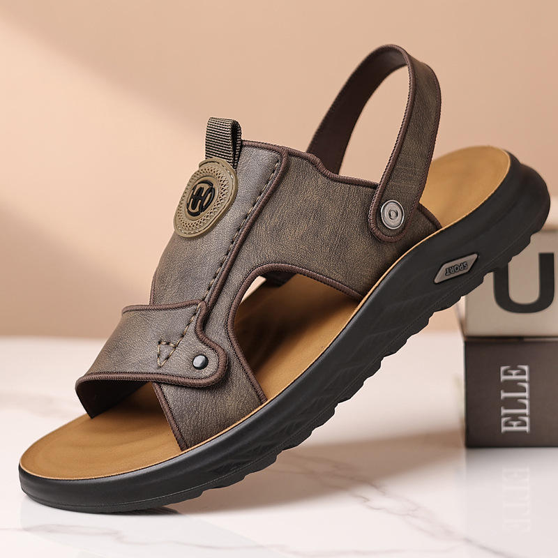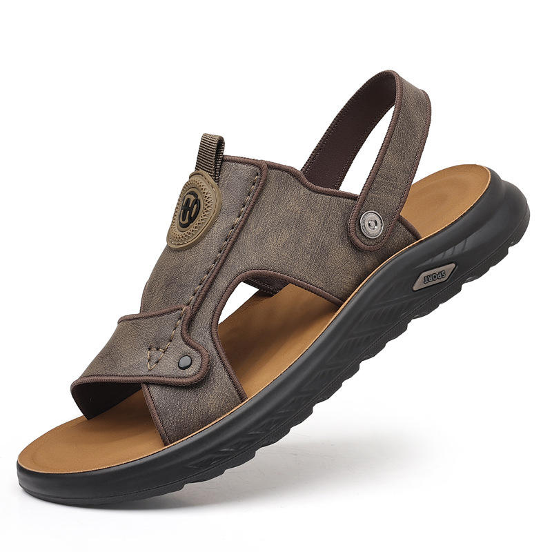 Sandalias de Verano de Cuero Genuino con Diseño de Punta Abierta, Zapatos Casuales para Hombre con Suela Suave y Transpirable, Fáciles de Poner