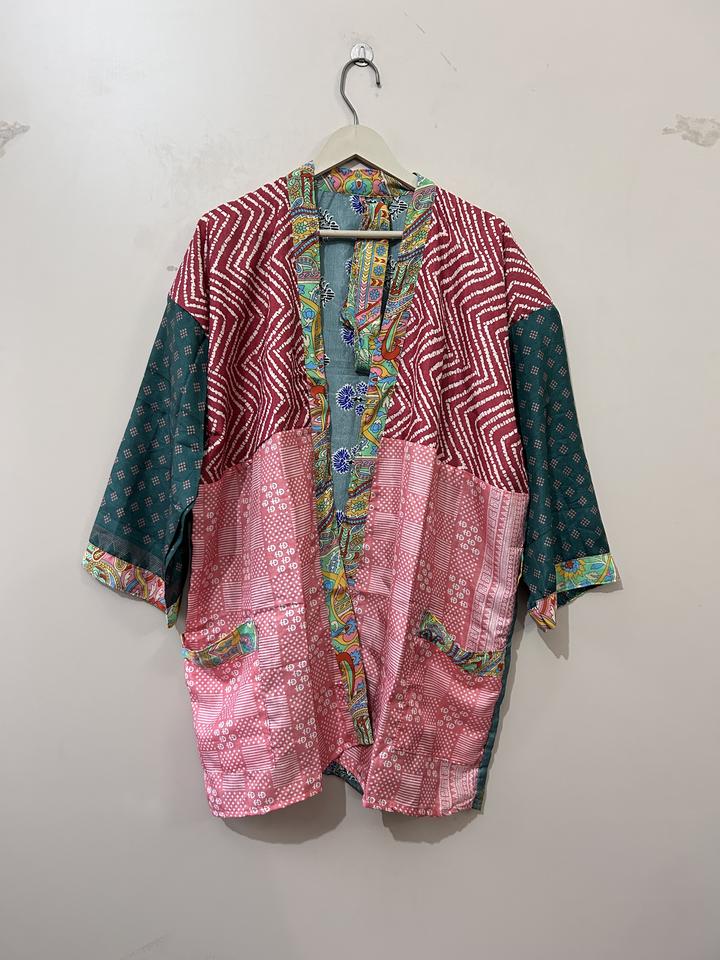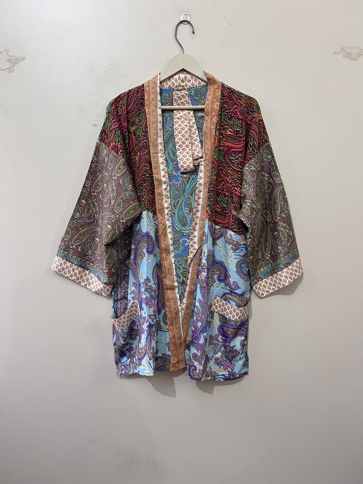 Kimono Corto de Verano, Bata de Dormir, Kimono Vintage de Seda Suave, Kimono para Dormir