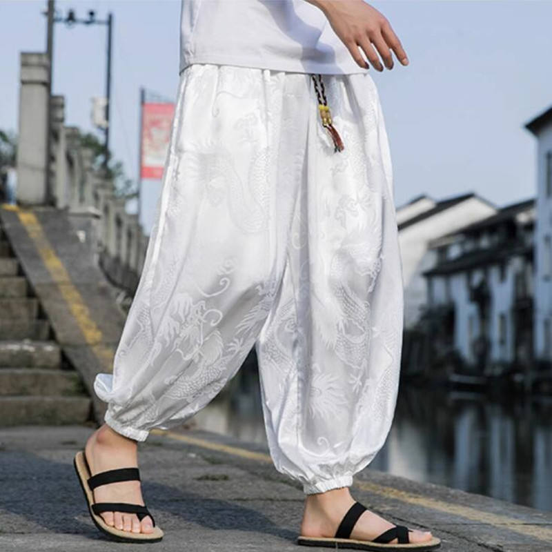 Pantalones Bombachos de Seda Estilo Hippie Bohemio para Hombre y Mujer, Pantalones de Yoga, Pantalones Aladdin - Azul XL 65-70kg