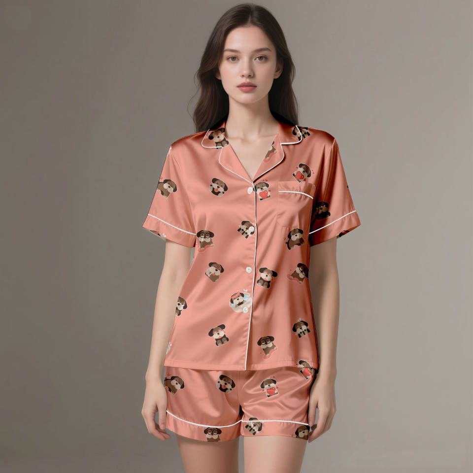 Descripción:Conjunto de pijama de satén para mujer