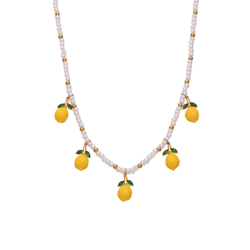 Verano pequeño fresco resina limón Margarita encanto joyería hecha a mano cuentas Shell cuentas fruta colgante collar para mujer