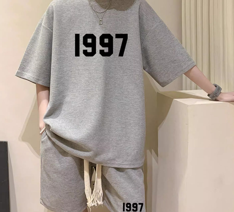 Conjunto de dos piezas deportivo de verano Hong Kong Ins Trendy Waffle Camiseta de manga corta Pantalones cortos casuales sueltos Chándal de punto vintage
