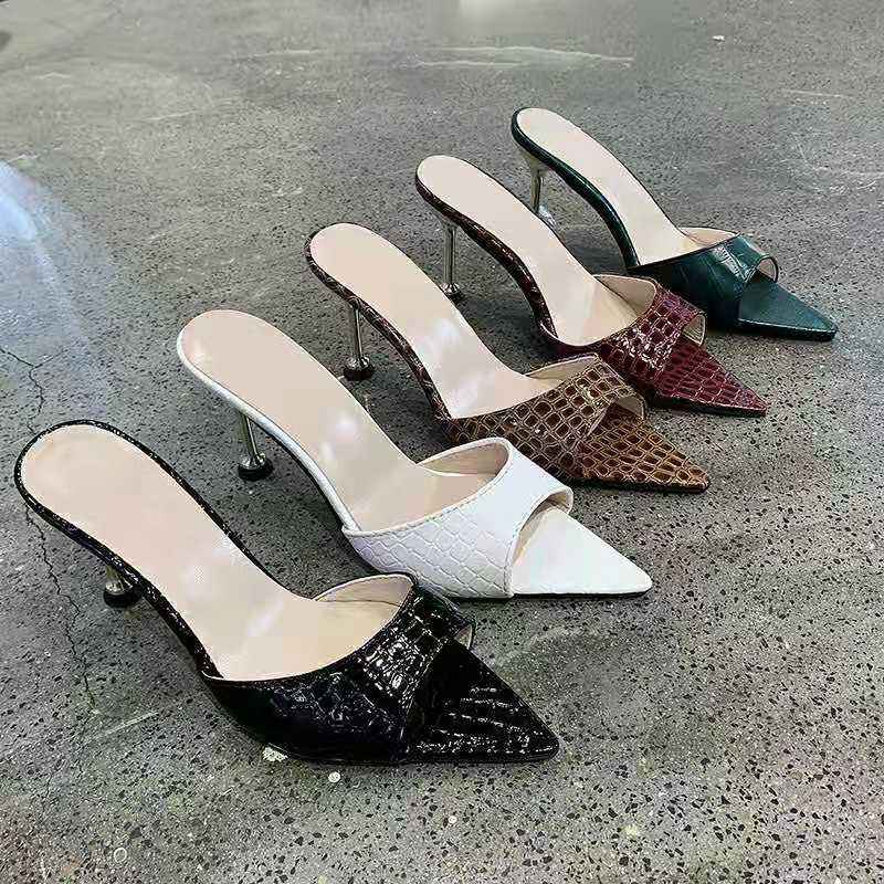 Zapatillas de Punta Puntiaguda para Primavera y Verano, Tacones de Metal a la Moda para Mujer, Tendencia 2021