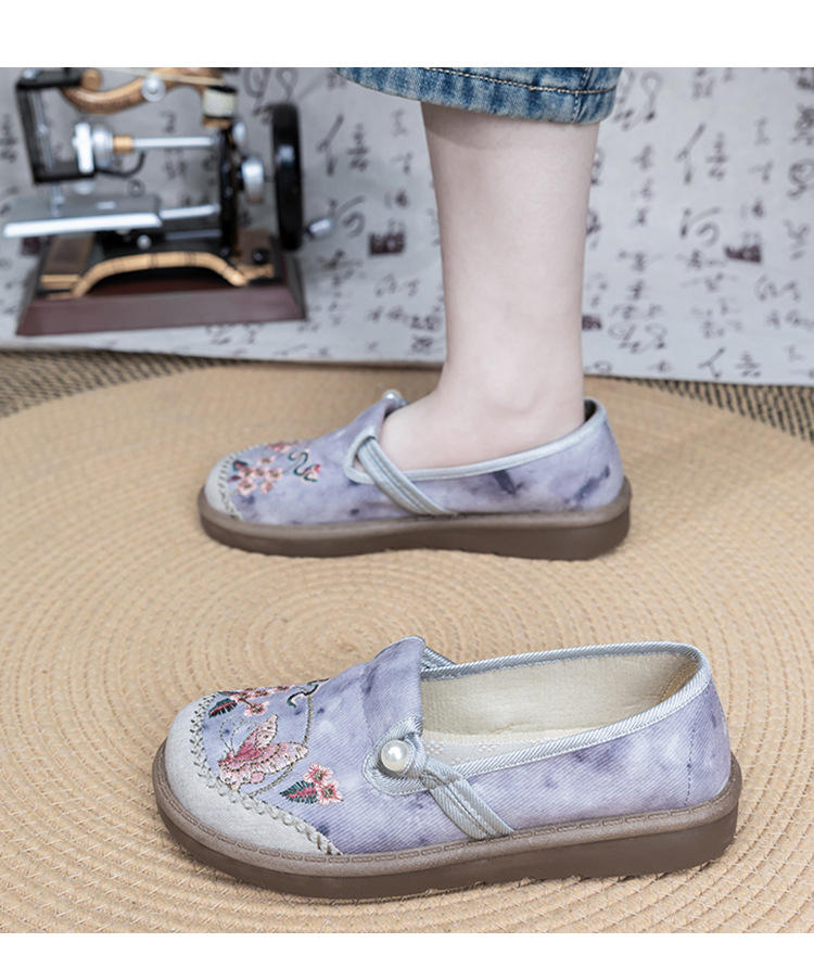 Zapatos de Tela Sin Cordones de Estilo Étnico Bordados con Malla Ligera para Mujer, Primavera Verano, Planos, Transpirables, Antideslizantes y Resistentes al Desgaste