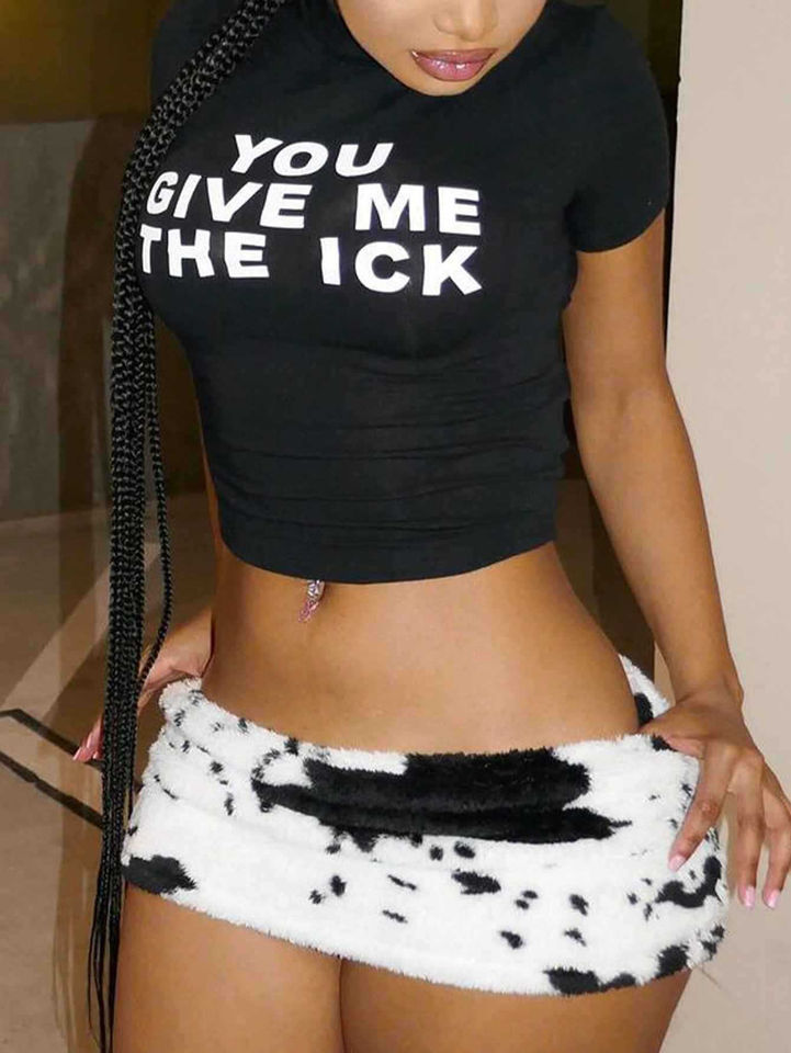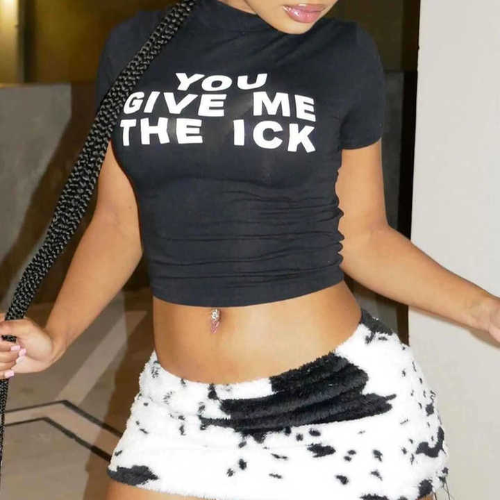 Summer Streetwear New Street Casual Leopard Print Letter Camiseta de manga corta Crop Top para mujer