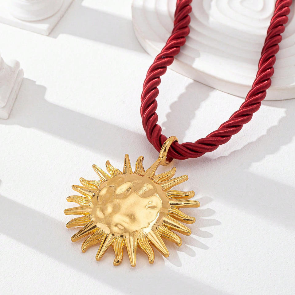 Verano vacaciones océano playa vacaciones cuerda sol girasol colgante señoras rojo Cope collar mujer moda joyería Bijoux regalos