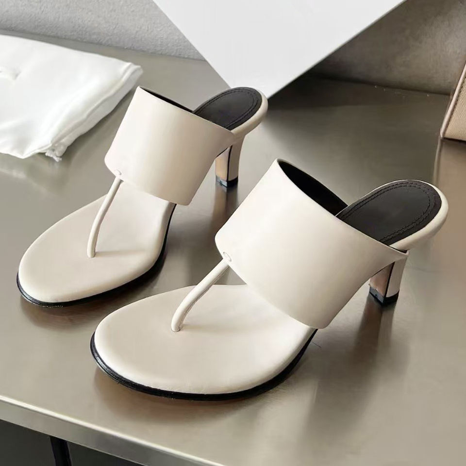 Sandalias de Verano para Mujer, Estilo ROW, Chanclas con Parte Superior de Cuero, Tacón Alto, Pantuflas con Logotipo Personalizado, Sandalias Minimalistas de Una Sola Tira para la Playa