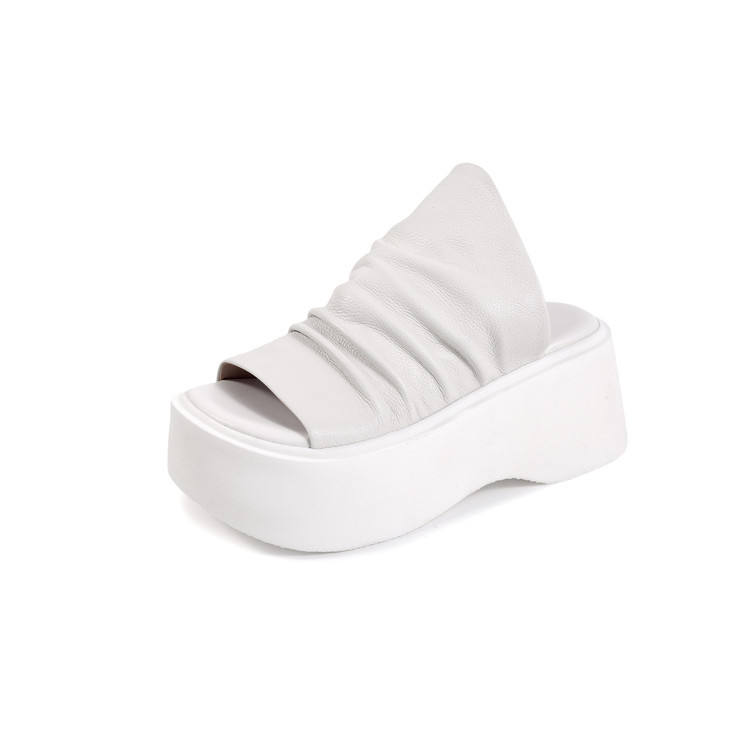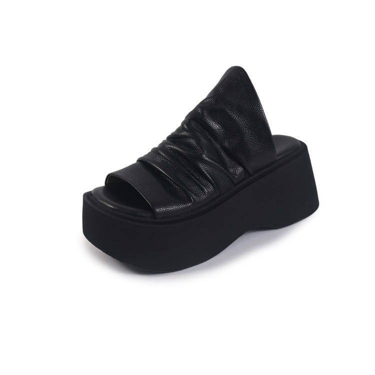 Sandalias de Verano para Mujer, de Piel Auténtica, con Suela Gruesa, de Color Sólido, Cómodas, de Tacón Bajo, Estilo Romano, Casual, a la Moda