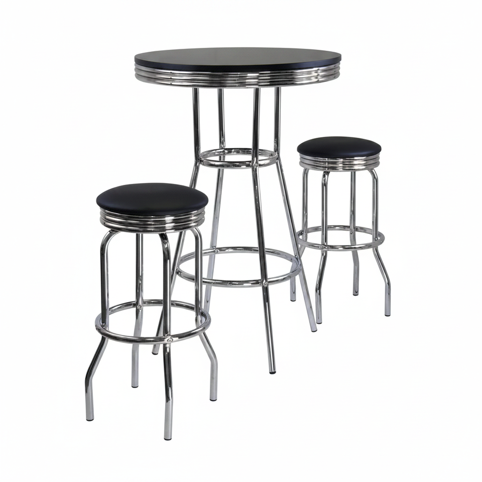 Summit Juego de mesa de pub de 3 piezas con 2 taburetes giratorios para uso en el comedor