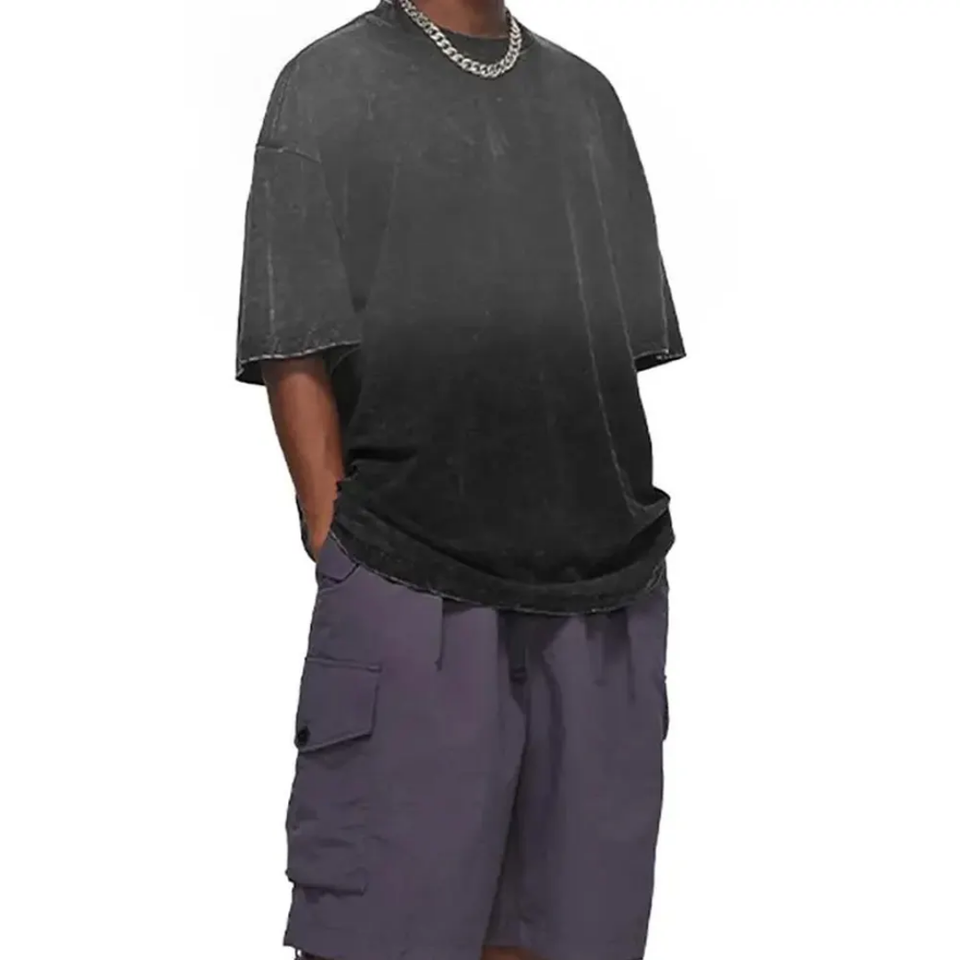Camiseta de hombre con estampado de diseño único clásico Sun Fade, camiseta de gran tamaño de manga corta con estampado Digital a la moda, camiseta de lavado ácido