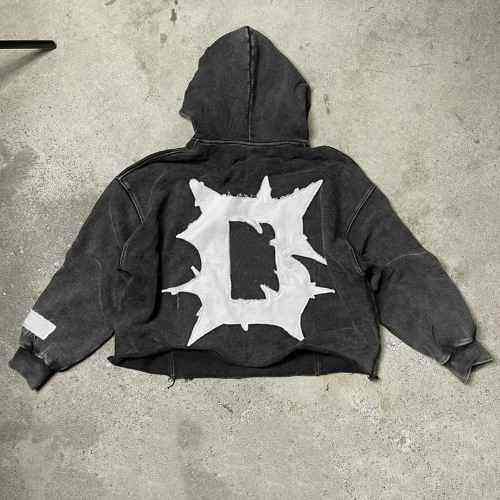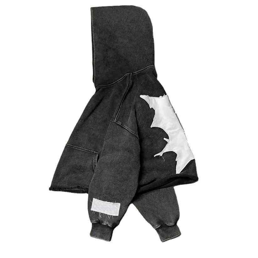 Sudaderas con capucha para hombre, 100% algodón, con efecto desgastado por el sol, corte deshilachado, lavado ácido personalizado, bajo sin rematar, apliques, parches y bordados, para invierno