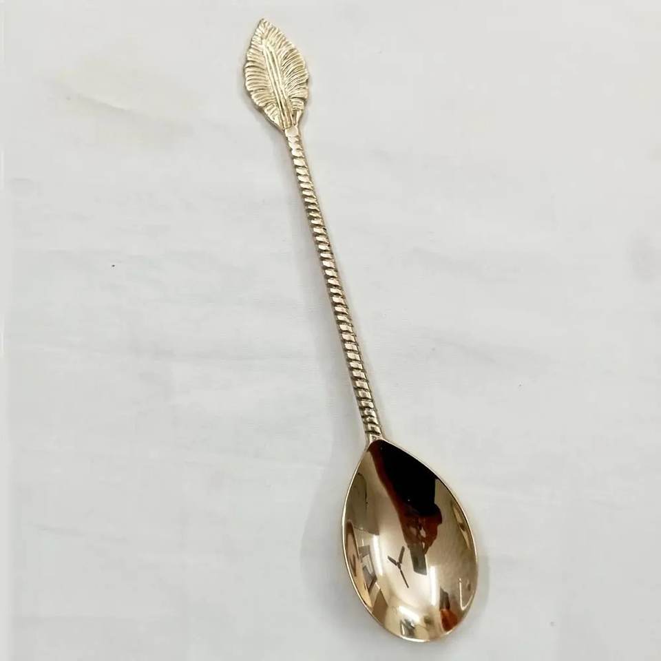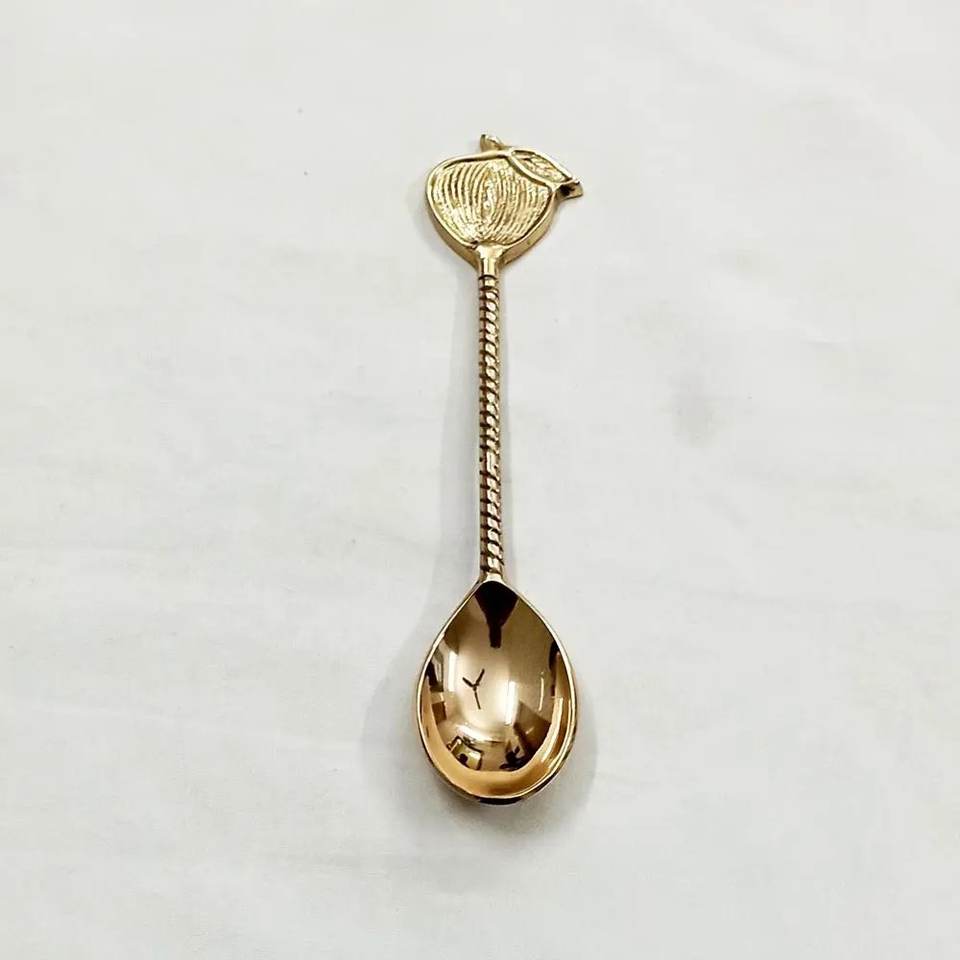 Cuchara Corta Dorada de Latón con Diseño de Girasol y Mango Hecho a Mano para Hoteles y Restaurantes, Cucharas Artesanales para la Cena