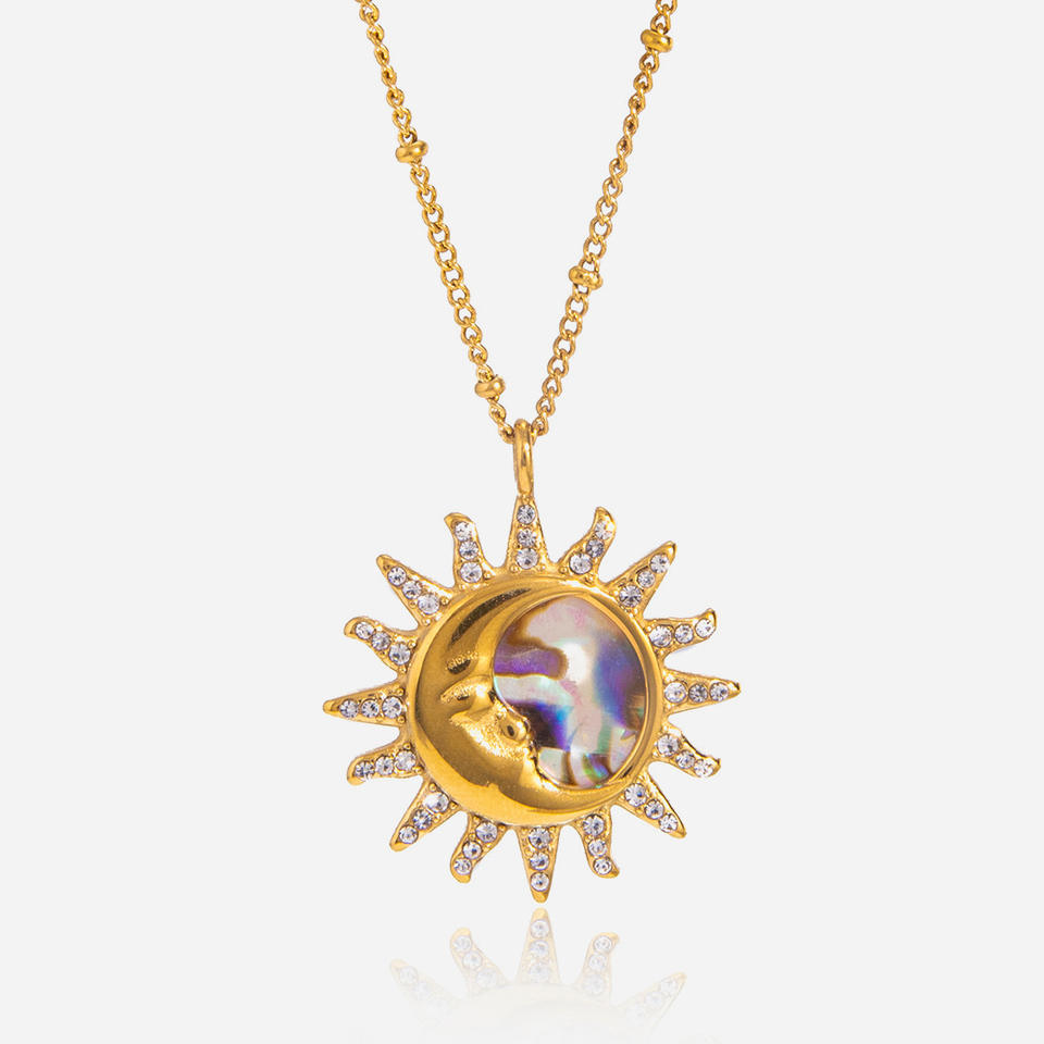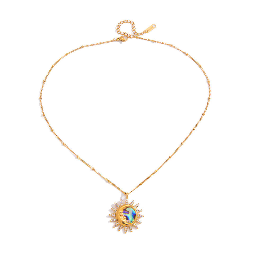 Collar con colgante de concha de abulón Sun Moon, cadena de clavícula con forma de estrella de acero inoxidable y diamantes de imitación, joyería para el tiempo libre