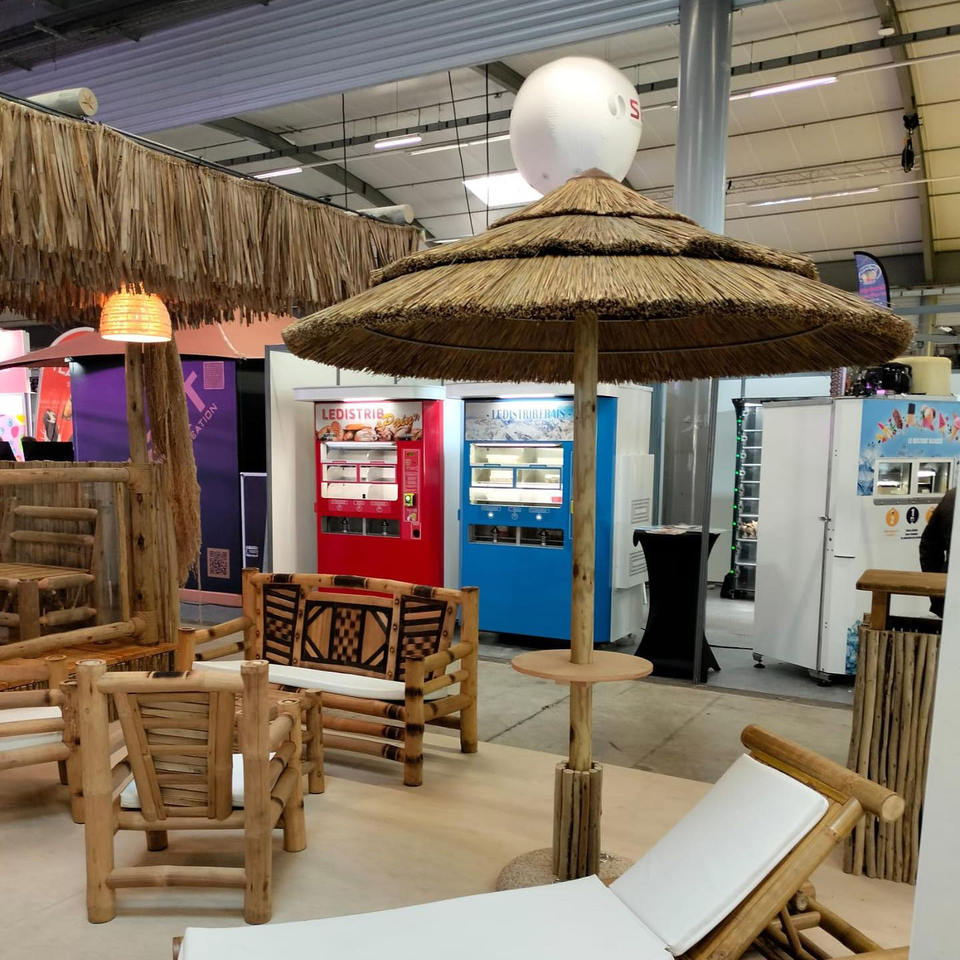 Toldo de hoja de palma parasol para eventos de boda al aire libre de lujo sombrillas de bambú natural