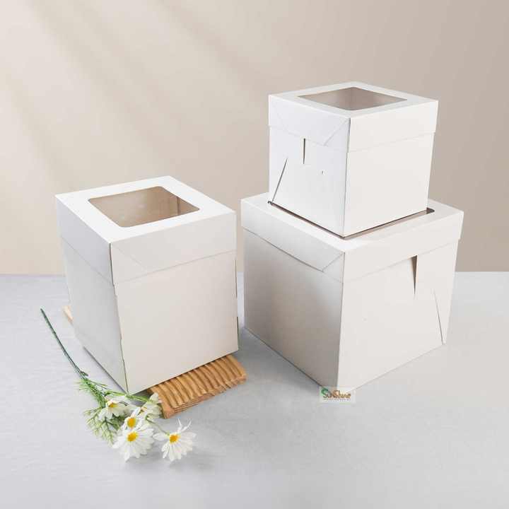 Cajas de Embalaje para Pasteles de 10 Pulgadas con Logotipo Personalizado SunShine, Cajas Blancas para Pasteles de Cumpleaños para Mascotas con Ventana