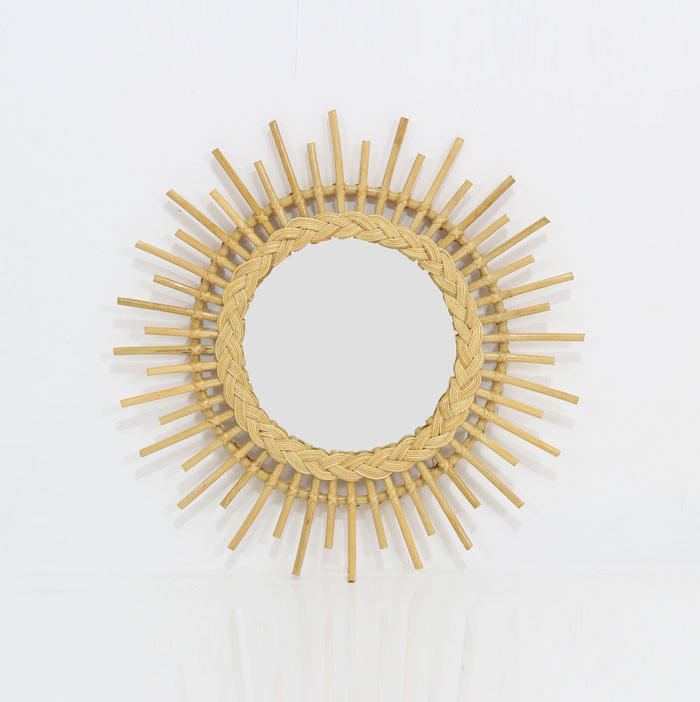 Espejo de pared de ratán Natural, efecto solar