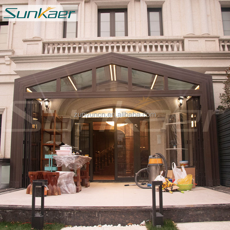 Sunkaer 3D diseño personalizado vinilo vidrio proyectado retráctil al aire libre sol gazebo sunroom patio recinto terraza cubierta