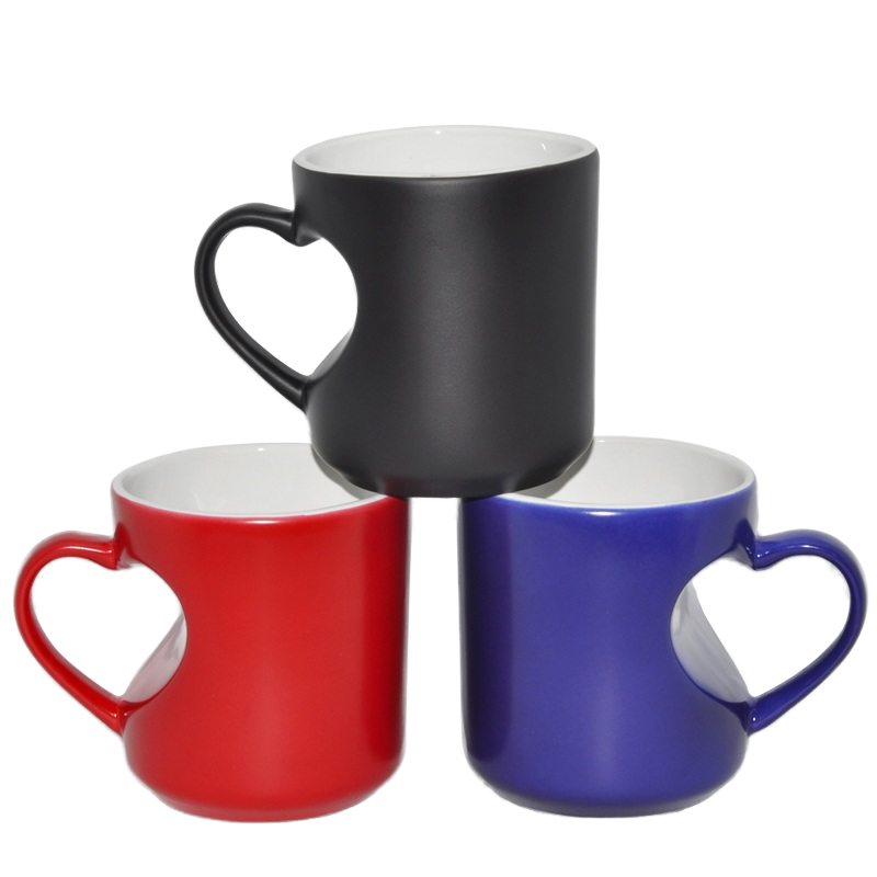 Taza de Cerámica Sunmeta de 11 oz con Forma de Corazón que Cambia de Color para Sublimación, Diseño Novedoso, Regalos Empresariales y Café